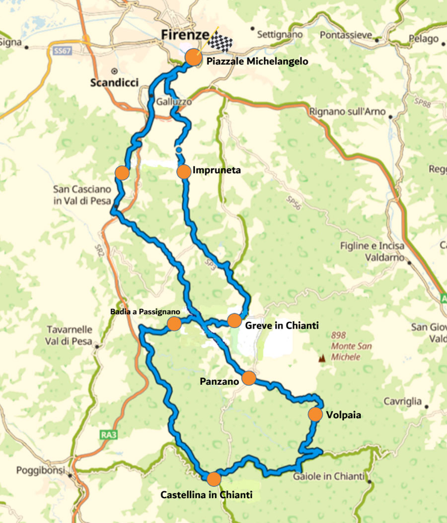 Back behind the wheel, we follow the legendary Chiantigiana, one of Italy’s most beautiful scenic roads. After a few kilometers, breathtaking panoramas lead us to Panzano, a village suspended between sky and vineyards, renowned worldwide for its wine tradition.