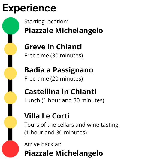 Your day begins from Piazzale Michelangelo or directly from your hotel.