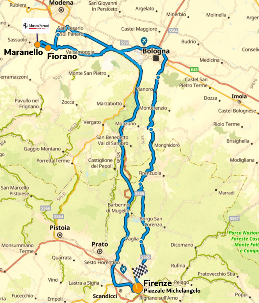 In the afternoon, enjoy the drive back along the spectacular SS 65 Futa state road, a historic route winding through the Tuscan–Emilian Apennines. Its curves and panoramas offer a perfect blend of driving pleasure and breathtaking scenery — the kind of road that makes you fall in love with the journey itself.